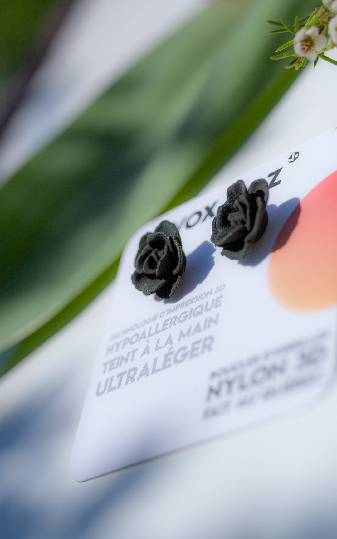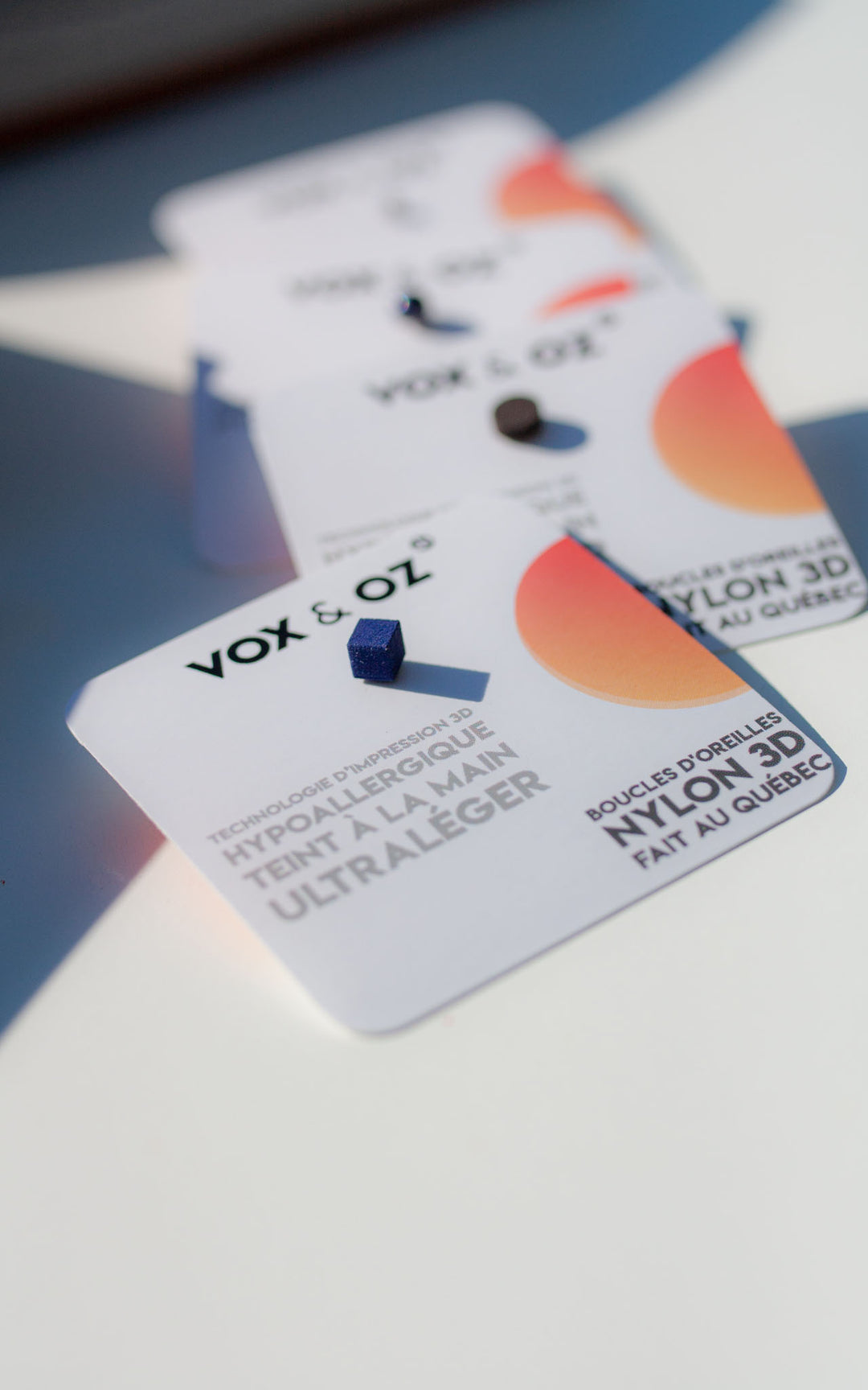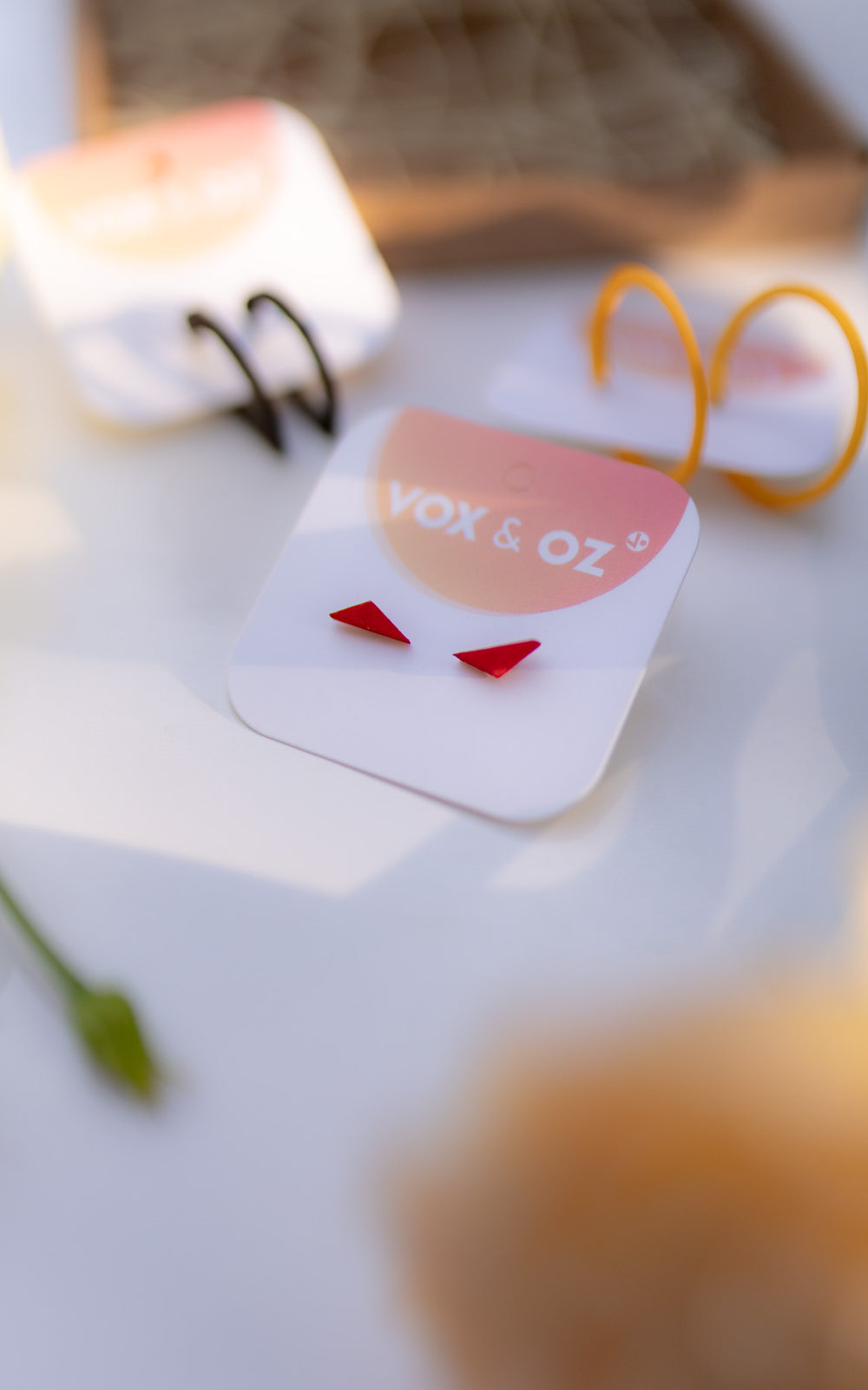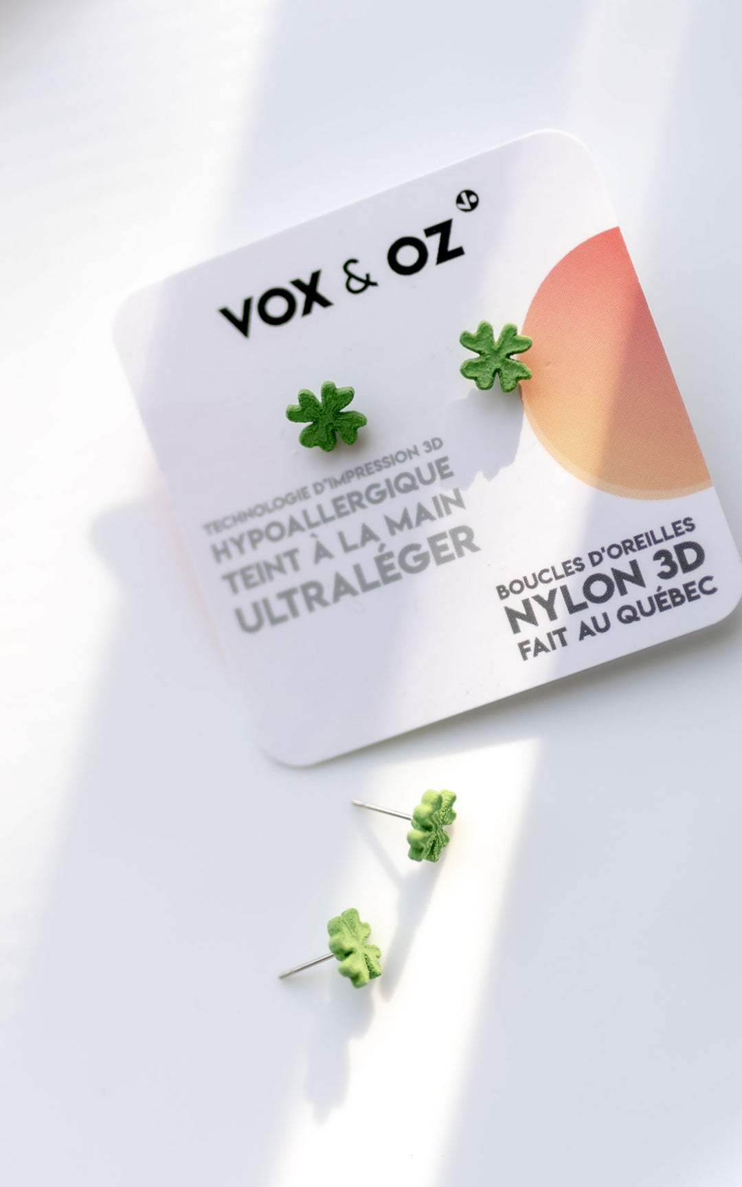 De la délicatesse à fleur d’oreille.Fabriquées une à une à Belœil, ces puces et clous d’oreilles en nylon recyclé offrent un équilibre rare : un format minimaliste et une personnalité assumée.Teintées à la main dans des nuances subtiles ou éclatantes, elles se portent seules ou en duo, pour créer des compositions tout en légèreté.Leur tige en acier chirurgical respecte les oreilles sensibles, et leur design géométrique ajoute une touche d’élan à vos tenues du quotidien.